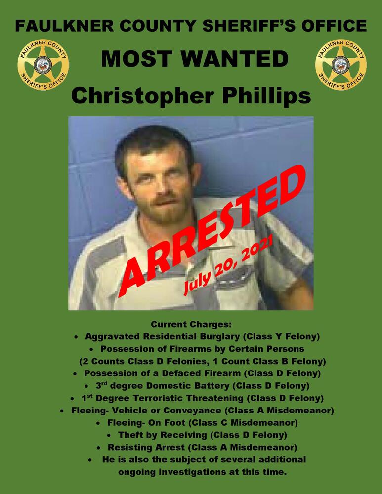 Christopher Phillips Arrest 07 21 2021 Press Releases Faulkner County Sheriff S Office